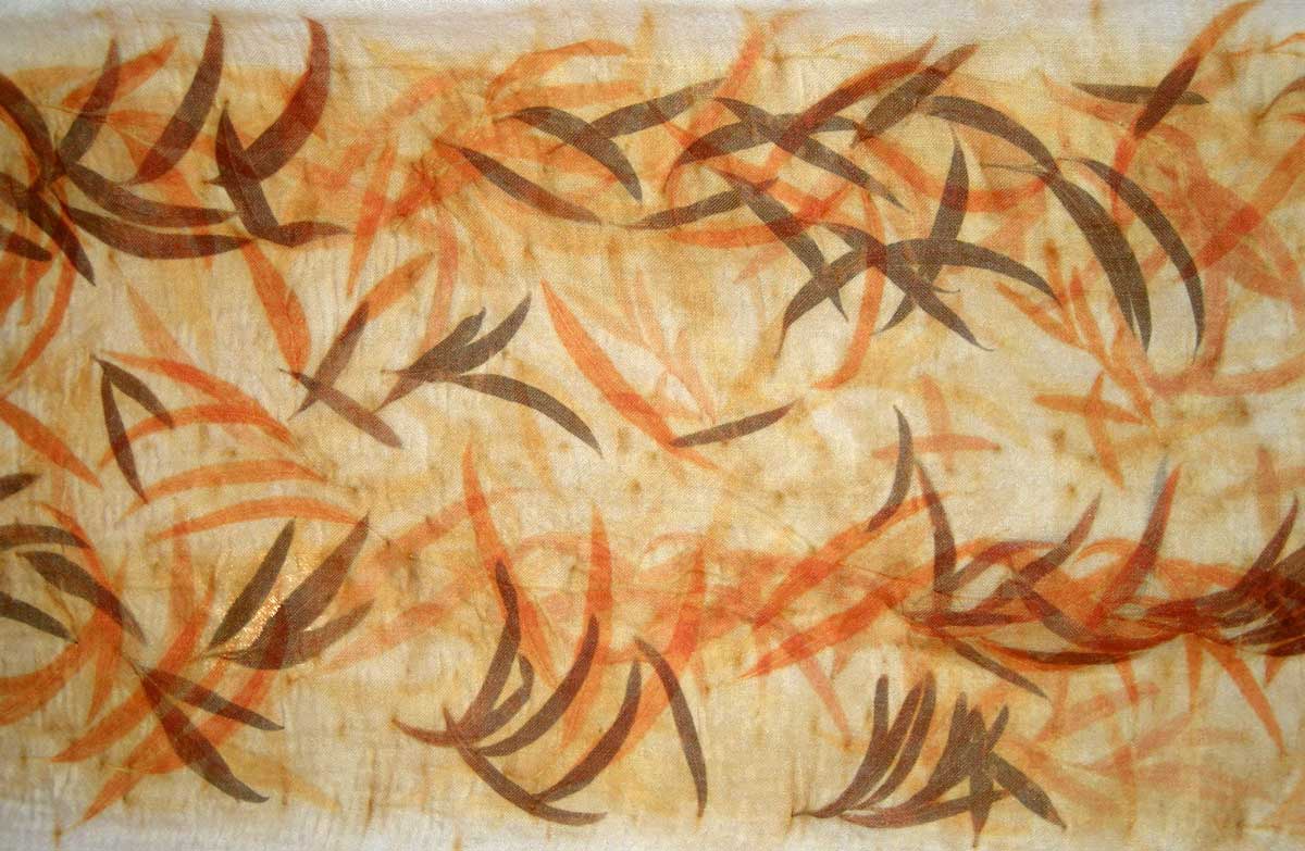 Mein Angebot umfasst pflanzlich gefärbte und bedruckte Stoffe aus den Naturfasern Baumwolle, Wolle und Seide sowie Papiere. Darüber hinaus koloriere ich Baumwollstoffe mit Rost, fertige feine Woll- und Nunofilze und webe im Freestyle. Es handelt sich ausschließlich um Unikate, die in aufwendiger Handarbeit gestaltet sind.