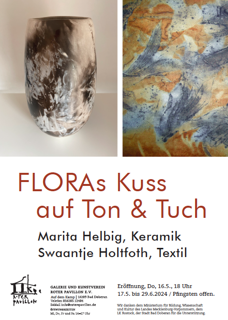 Gemeinschaftsausstellung „FLORAs Kuss auf Ton und Tuch“ mit der Gefäßkeramikerin MARITA HELBIG im ROTEN PAVILLON - Bad Doberan